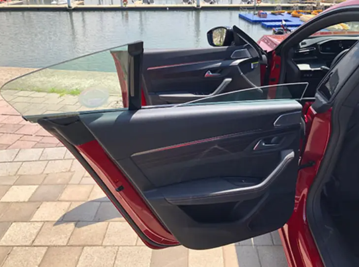 자세히 보면 창문이 쪼개져있다. 사실 많은 사람들이 궁금해 하진 않았겠지만 쪼개진 이유가 창문의 전체가 열리기 위함이다. 저렇게 창문을 쪼갠다면 창문 전체가 열리겠지만 유리를 2장 제조 해야하고 가운데 창살을 추가해야 하는 생각보다 많은 원가 차이가 난다. 그래서 이 형태는 프리미엄 브랜드나 대중 브랜드의 중상급 차량들에서 자주 볼 수 있다. 물론 아닌 경우도 있다. 이 형태는 디자인을 침해한다고 해서 첫번쨰 사진에 아우디 a7 같은 경우에 통일감 있는 옆 라인을 위해 창살을 넣지 않았다.(사실 프레임리스 도어에 창살을 넣는 다는 것은 고도의 기술이 필요로한다.) 세번째 사진의 cla는 창살이 더해진 모습을 볼 수 있다. 그로 인해 창문 전체가 열릴 수 있었다. 물론 창살이 있다고 해도 다 열리지 않는 차량도 있다.